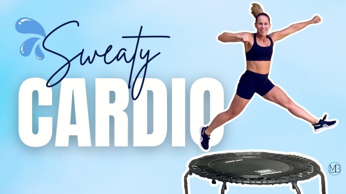 25 Min Sweaty Trampoline Cardio Workout is a short but intense cardio workout from Michelle Briehler. I feel like I cannot give a true account of the intensity because I combined this with one of Michelle's other workouts: 30 Min Intense Trampoline Cardio HIIT Workout, which kicked my butt! So I was pretty fatigued already … Continue reading 25 MIN SWEATY Trampoline Cardio Workout | Intermediate Level | Calorie BURNER