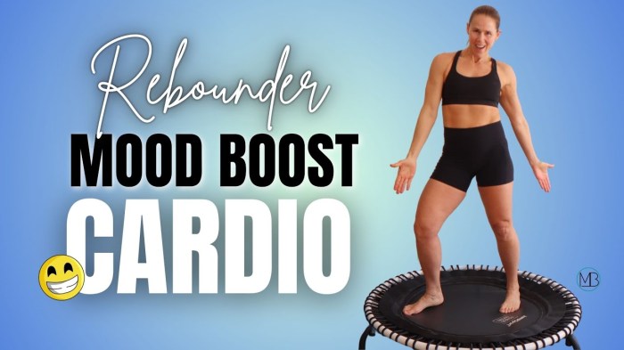 35 Min Mood Boost Rebounder Cardio is a feel good steady state cardio workout from Michelle Briehler. It boosts your mood because it doesn't kill you like many of Michelle's other rebounder workouts. I did really enjoy it. There are no complicated moves and the music appears to be at a slower tempo than many … Continue reading 35 MIN Mood Boost Rebounder Cardio | at home FEEL GOOD Trampoline Workout