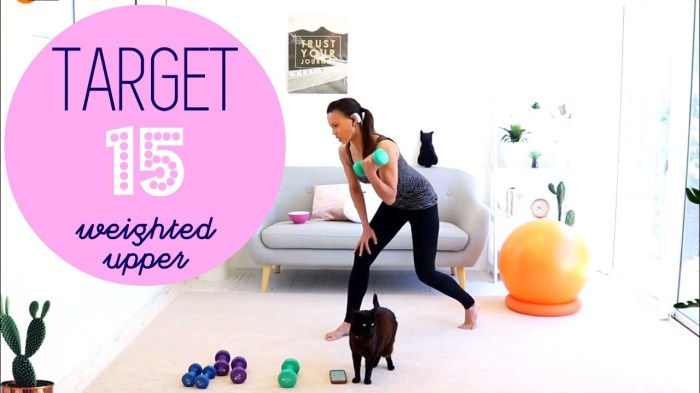 Target 15: Weighted Upper is part of Linda @ Barlates Target 15 series. I really like Linda's Target Series. She has Target 10, Target 15 and Target 20 workouts and I bought all 3 DVDs. Each DVD contains 10 focused workouts that fall within the title's time range. Weighted Upper contains 15 exercises that “target” your … Continue reading Barlates: Target 15/Weighted Upper