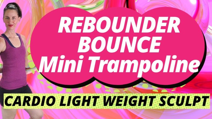 Jump Cardio Trampoline Workout | Glutes + Core + Shoulders | Rebounding is an awesome and intense rebounder workout from Michelle Briehler. It is primarily a cardio workout but you also get 3:30 minutes of glute work and 3 minutes of core work. The shoulder work is just one short cardio segment using light hand … Continue reading JUMP Cardio Trampoline Workout | Glutes + Core + Shoulders | Rebounding