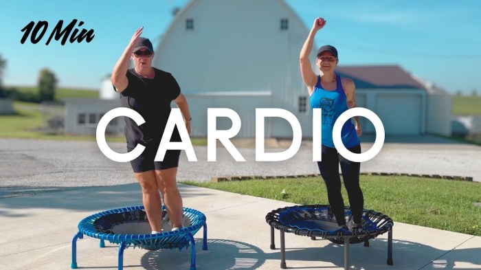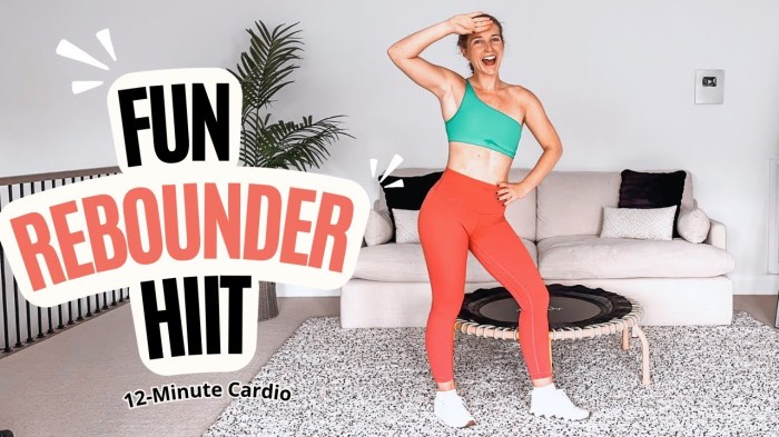 Fun rebounder HIIT is another fun rebounder workout from Sydney @ Jump & Jacked. Though this workout has "HIIT" (high intensity interval training) in the title, I don't think it was intense enough to deserve the label. It wasn't even done to true intervals. I will say that it did seem like a high-low workout. … Continue reading Jump & Jacked: Fun Rebounder HIIT Workout to Music | 12-Minute Mini Trampoline Cardio